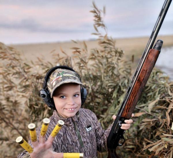 Seth Almond of Camden, 9 years old, hunting ducks in Buenos Aires Province in Argentina